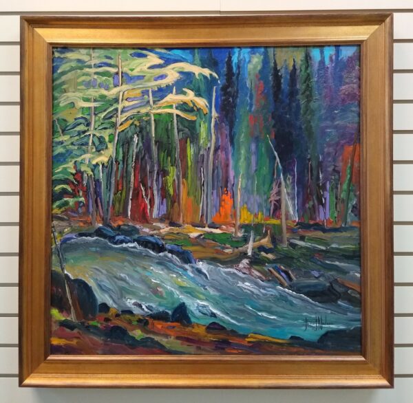 Original oil on canvas measuring 30 x 30 inches, 36 x 36 including the framing. The price includes the framing.